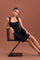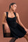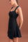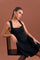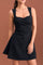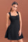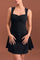 This elegant black padded dress showcases a structured yet feminine design.